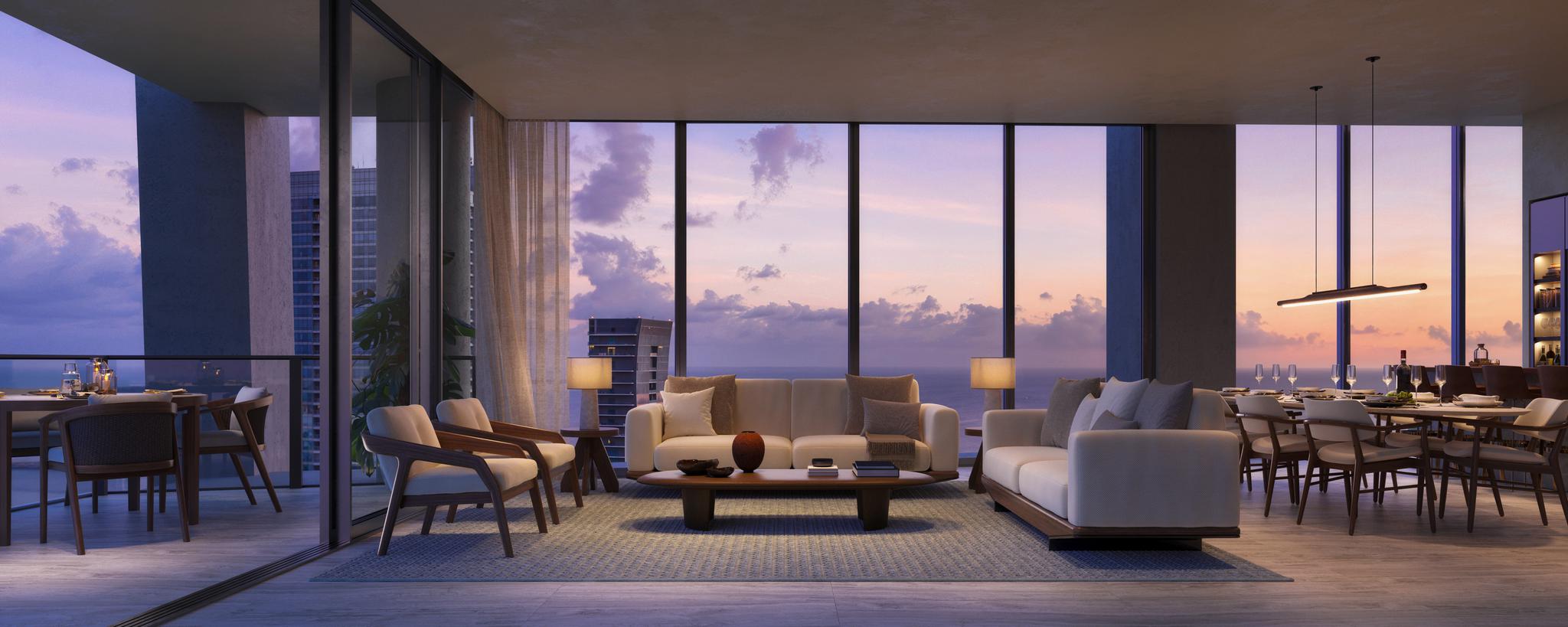 As you enter Ora by Casa Tua, you are immediately struck by its grand lobby, which is adorned with modern furnishings and elegant lighting. The lobby's high ceilings and vast windows create a welcoming and spacious environment that is sure to impress. The building's living spaces are thoughtfully designed with a modern and sophisticated aesthetic. Each unit features an open-concept layout with floor-to-ceiling windows that offer breathtaking views of the surrounding area. The interior finishes are luxurious and high-end, with hardwood floors, quartz countertops, and top-of-the-line appliances.